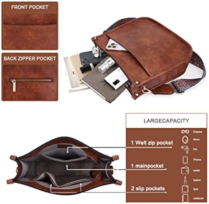 Vegan Leather Imported Polyester lining Zipper closure Dry Clean Only ✔【Premium Eco-friendly Leather】This cross body bag is made of eco-friendly pu leather with waterproof ability, soft fabric,abrasion-resistant, scratch-resistant,durable,non-fading,also without any weird smell,and non't hurt people's body skin.It has biodegradable function,which effectively reduces the impact of human beings on the environment and makes it easier to protect the environment,This is why our crossbody bags choose high-quality,environmentally friendly materials! ✔【2-PCS Adjustable Removable Straps】Each CAITINA women's hobo handbag is equipped with 2 adjustable removable crossbody wide shoulder straps :1 weaving shoulder strap + 1 boho style strap,crossbody bag internal use fabric lining and high quality gold hardware,Also the strap is equipped with a gold metal clip attachment for easy clipping to any ladies cross body bag,that can be easily changed out quickly to give your bag a different look. ✔【Crossbody Bag Dimension&Structure】This crossbody handbag dimension:(L) 12 x (W) 3.5x(H)10inch,weight about 0.61kg / 1.34pounds,Internal structure is one main compartment including 1 main pocket,1 inner zipper pocket,2 slip pockets-cell phone pocket and ID card slot.External structure including 1 metal magnetic buckle pocket and 1 back anti-theft pockets,come with metal zipper closure,main pocket and back pocket antitheft zipper design-double antitheft to protect your property safety. ✔【Ergonomic & Multifunction Design】The material of this crossbody bag is soft and comfortable, foldable and not deformed,and has a storage function.It can be folded and placed in your handbag or backpack. It is very light and easy to carry, saves space,allows you to go when you travel.At the same time,it adopts the wide shoulder strap design to help relieve shoulder pressure,comes with ergonomic design. ✔【Perfect Gift Choice&Sale Service】This leather crossbody bags for women is capable for storing many small daily necessities,such as wallet,phones, ipad,keys,cash,coins,sunglasses and makeup accessories,also this ladies crossbody bag is all ages,it is an ideal gift for your lover,wife,friends,family at a birthday,Mother's Day,Christmas,Valentine's,wedding anniversary.If you have any question or dissatisfied with our bag,please contact us and we will offer a full refund/free replacement.