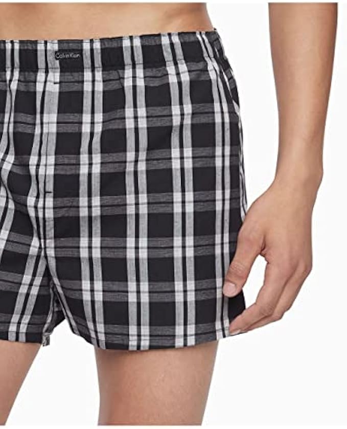 • Woven boxers for men from Calvin Klein, crafted from pure cotton with an elastic waistband, functional fly, and a subtle CK logo at the center.