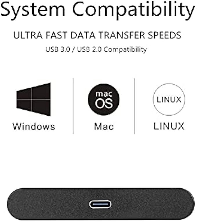 Impressive Performance : USB 3.1 Super speed 10Gbps transfer rate ultra slim and light weight Portable external hard drive.Runs straight from a usb 3.0 or usb 2.0 port no external power source needed