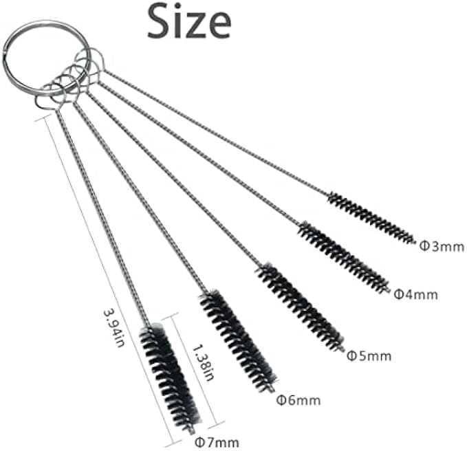 Different Diameters- These cleaning tools come with different diameters. 10 cleaning needles + 5 brushes, overall length: 3.94inch (100 mm), Cleaning brush diameters: 3mm, 4mm, 5mm, 6mm, 7mm. Cleaning needles diameters: 0.6mm, 0.8mm, 1mm, 1.2mm, 1.4mm. Have this to clean the ethanol gunk from the small diameter passages Jet and pilot tubes - of small gas engine carbs. Have been handy for everything from weed eaters to motorcycles.