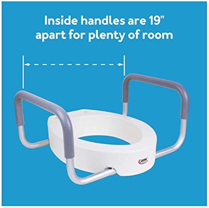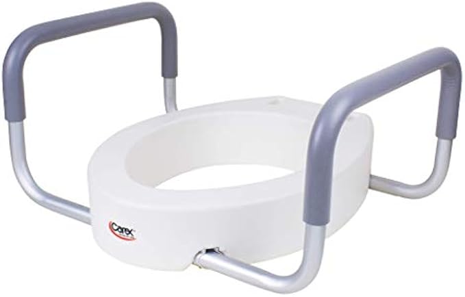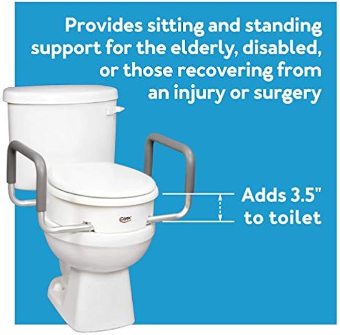 Carex 3.5 Inch Raised Toilet Seat with Arms - For Elongated Toilets, Elevated Toilet Riser with Removable Padded Handles, Easy On and Off, Support 250 lbs, White