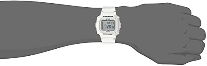 • Square white watch featuring illuminating dial with 24-hour stop watch, day/date calendar, and 7-year battery