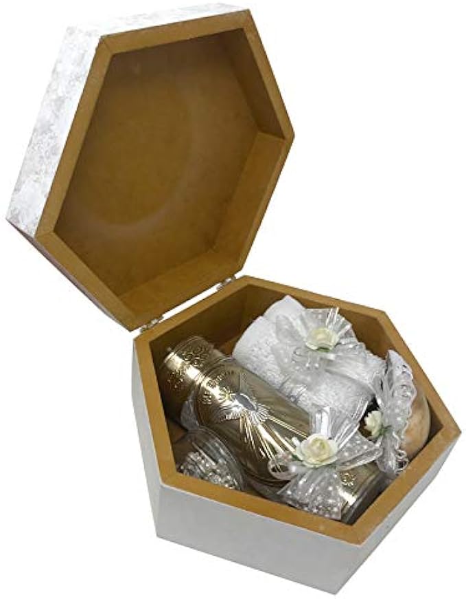 WOODEN BOX: The Baptism Kit includes a wooden handmade box to preserve the towel, candle, rosary and shell before and after the baptism occurs. THE ITEMS ARE NOT GLUED, as other items on other kits are.