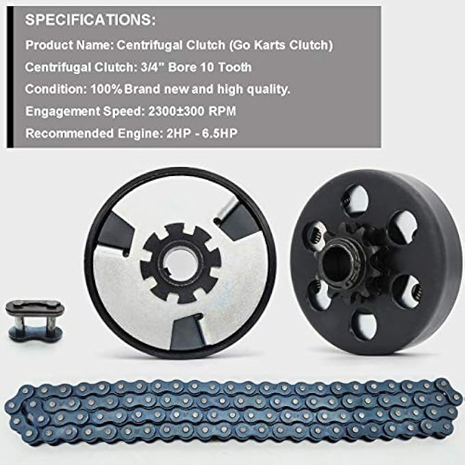 ★ Clutch Easy installation, a perfect replacement part for your mini bike and go kart. Package included: 1 x Centrifugal Clutch; 1 x Chain;1 x Connecting Link