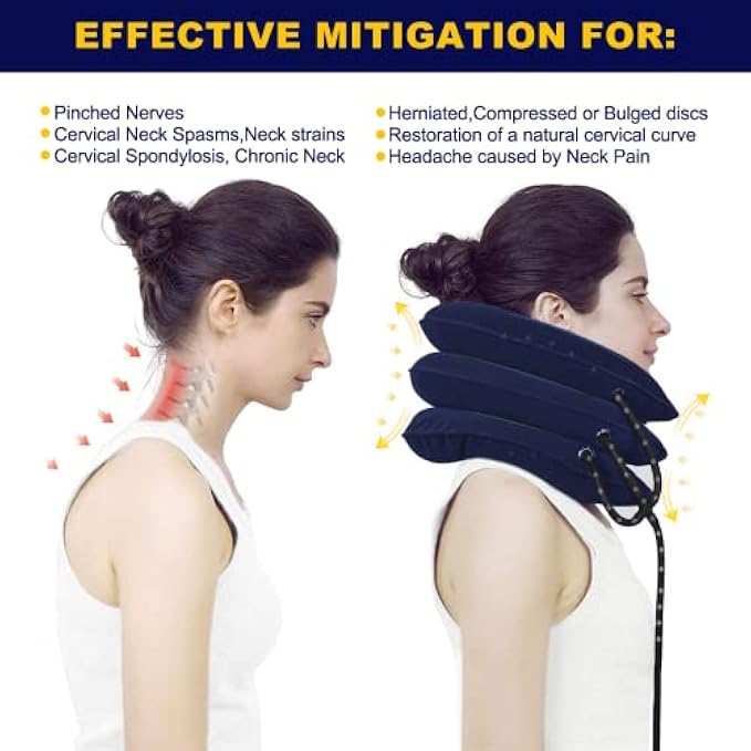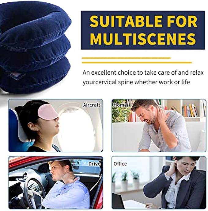 【Easy to Use and Carry】 - The inflatable neck pillow is light and exquisite, and easy to carry, whether you are working, or having a lunch break. Ideal for those with neck pain, neck sprains, neck strain, post-operative rehabilitation, and neck injuries. If there is any quality problem with our cervical traction device, please feel free to contact us, we will solve the problem for you within 12 hours.