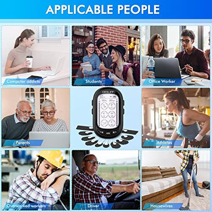 【MULTI-FUNCTIONAL WITH 24 MODE】: This muscle stimulator with 24 TENS EMS combination modes and 36 level intensity, which can simulate 6 massage functions separately: Kneeding, Acupuncture, Scraping, Tapping, Shiatsu-Deep, Cupping. CESLIFF TENS EMS unit stimulate pain sensory nerves through electricity pulse wave to relieve body pain and muscle aches and also can effectively help build muscles!