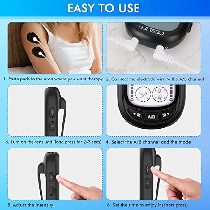 【INDEPENDENT A/B DUAL CHANNELS】: You can set separate modes and intensities for channel A and channel B according to your specific body part condition. Relax Any Time Anywhere with Pocket Size! Use TENS machine to reduce pain and muscle spasms for back, knees, shoulder, ankles, wrists, and elbows, and make this the most powerful weapon in your fight against chronic pain!