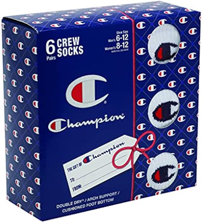 Champion mens Men's Crew Sock 6 Pack With Gift Box