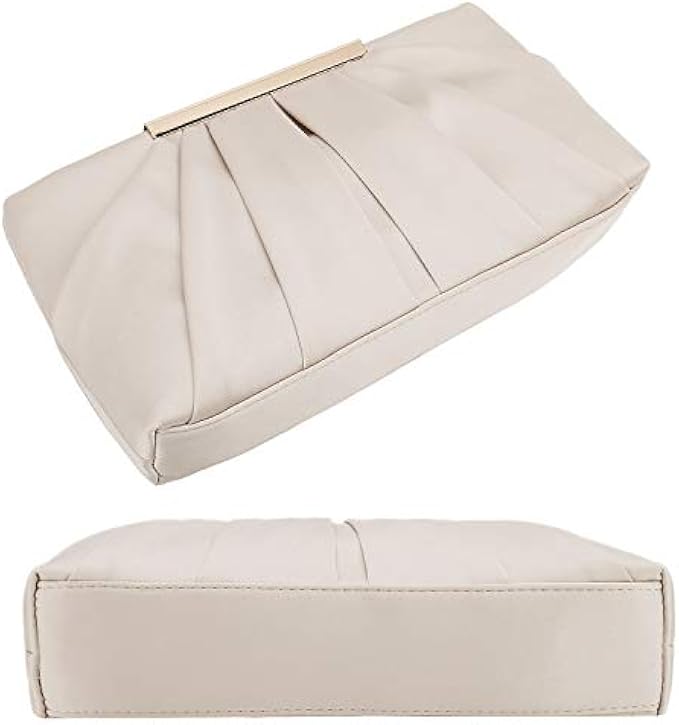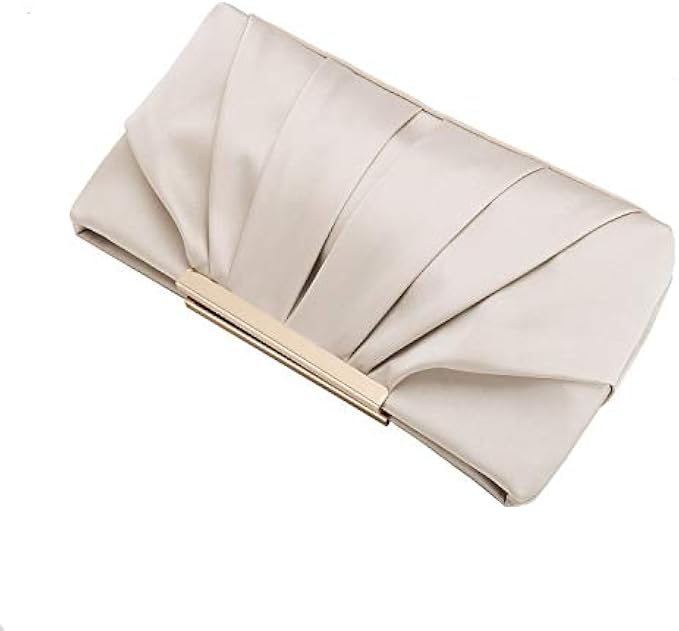 This Charming Tailor evening clutch bag is with pleated ruching design and metal accent at top, very simple yet classy, matches many outfits, a plain cocktail dress, or a formal attire. This champagne evening purse is perfect for wedding, cocktail party, prom and some formal events. There might be a slight color difference for champagne color.