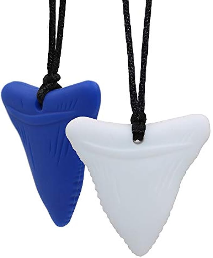 ★ DISCREET AND STYLISH DESIGN - Adjustable string & breakaway clasps make the autism chew toys sensory safe to use for most children. Fashionable shark tooth design chewing necklace sensory chew toys easy to grab, not stuck in throat. Adult supervision should always be required while using these chew necklaces for kids.