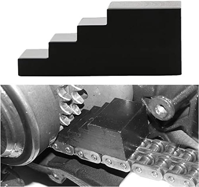 Easily inserted into the primary drive system and wedges in place to restrict movement without damaging the sprocket teeth.