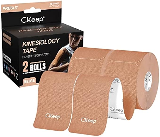 CKeep Kinesiology Tape (2 Rolls), Original Cotton Elastic Premium Athletic Tape,33 ft 40 Precut Strips in Total,Hypoallergenic and Waterproof K Tape for Muscle Pain Relief and Joint Support