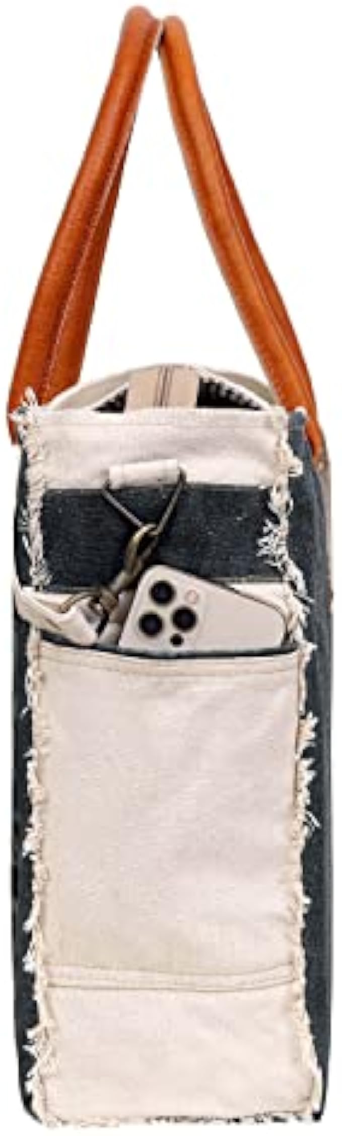 CLA Bags SEL de MER Upcycled Large Upcycled Canvas Crossbody Bag & Cowhide Tote Bag, Upcycled Canvas & Cowhide Leather Handbag Bag for Women