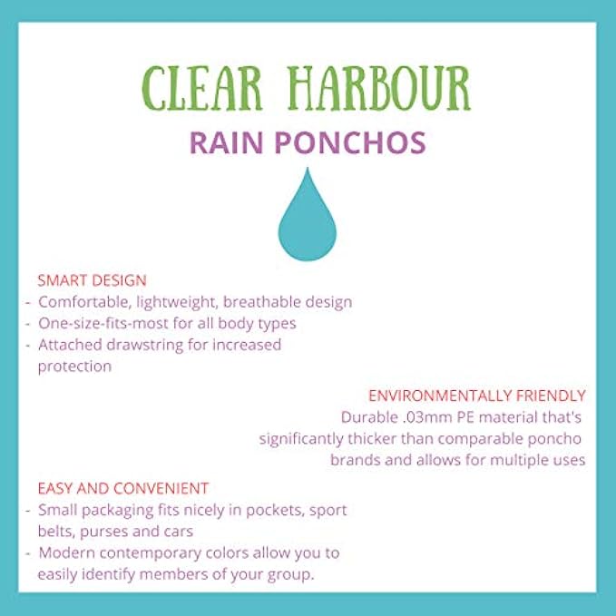 Clear Harbour Emergency Disposable Rain Poncho Pack for Adults | Women and Men's Rain Ponchos in Bulk | Extra Thick, Waterproof Reusable .03mm PE Plastic Material for Travel, Survival, and Fun.