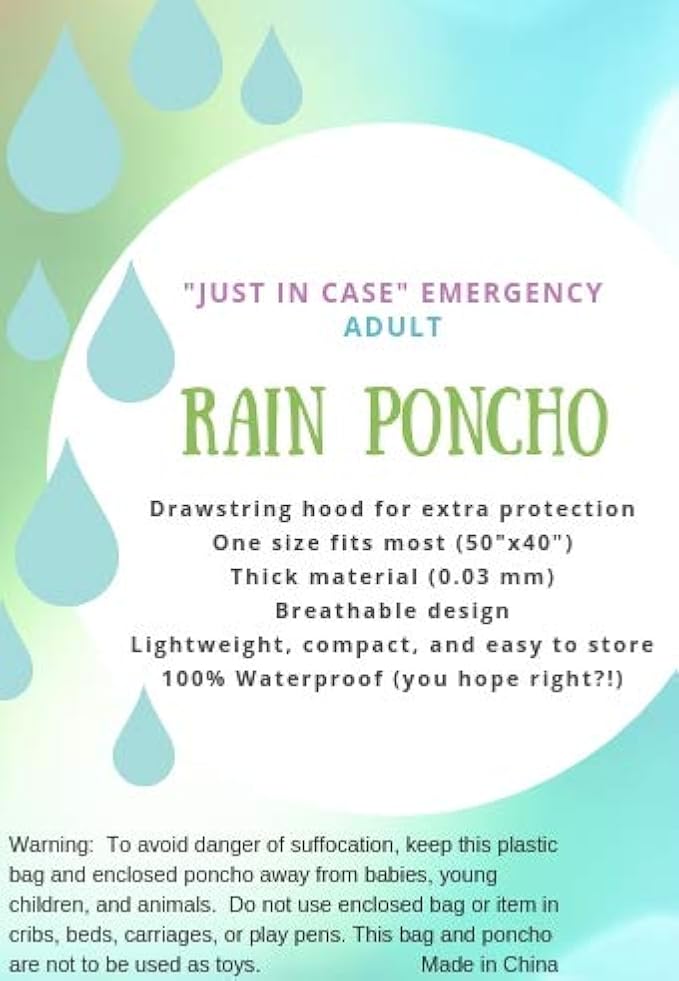 • SAVE MONEY: Purchase your rain ponchos now and avoid the internal conflict between being uncomfortably drenched in rain or paying outrageous costs for on-site ponchos!