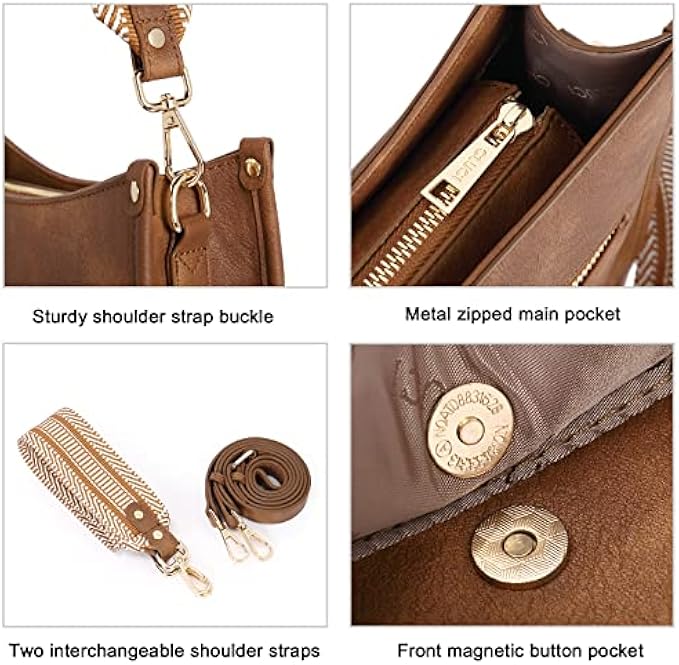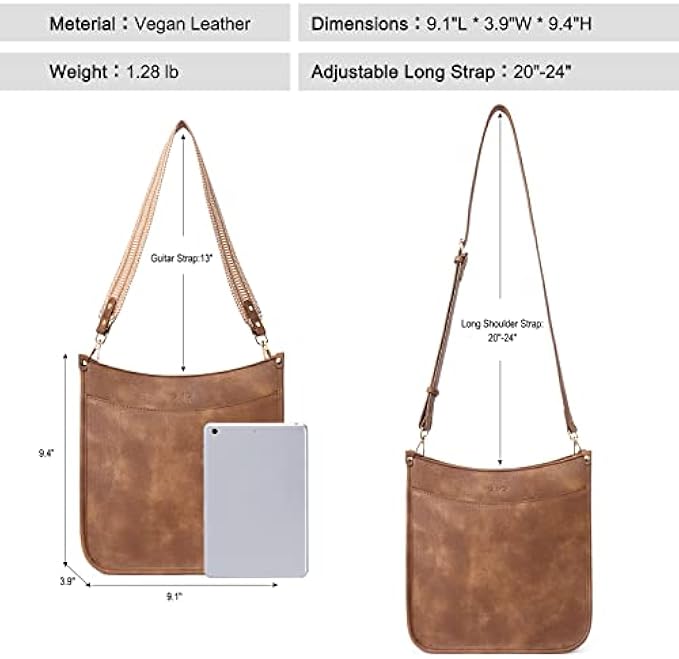 PU leather Imported Leather lining Magnetic closure Material: This guitar strap purse is made of waterproof PU leather on the outside and smooth lining on the inside. Soft to the touch, not easy to deform, and can stand up,The product is consistent with the picture.(Tips:Woven straps are non-adjustable) Dimensions: 9.1"L * 3.9"W * 9.4"H. Adjustable handle strap length up to 24 inches, purse for women fits iPad, cell phone, cosmetics, books, wallet and more. Multi-pocket design: main pocket*1, inner zipper pocket*1, inner slip pocket*1, front magnetic button pocket*1, rear zipper pocket*1, providing you with more practical space for easy access to items. Multipurpose: There are so many uses for this bag! You can use it for work, school, travel, shopping, dating, parties, meetings, and it can also be used as a diaper bag by new moms! It's super soft, durable, and vegan-friendly too! Women's crossbody handbags can be matched with various styles of clothes, showing the unique elegance and cuteness of women. Warranty: We are always committed to the quality of the bag after multiple inspections, the protective packaging packed in the bag, high standards of quality after-sales service. If you have any questions before or after your purchase, please feel free to contact our customer service team and let us keep improving our products. Hope you have a happy shopping in our CLUCI!