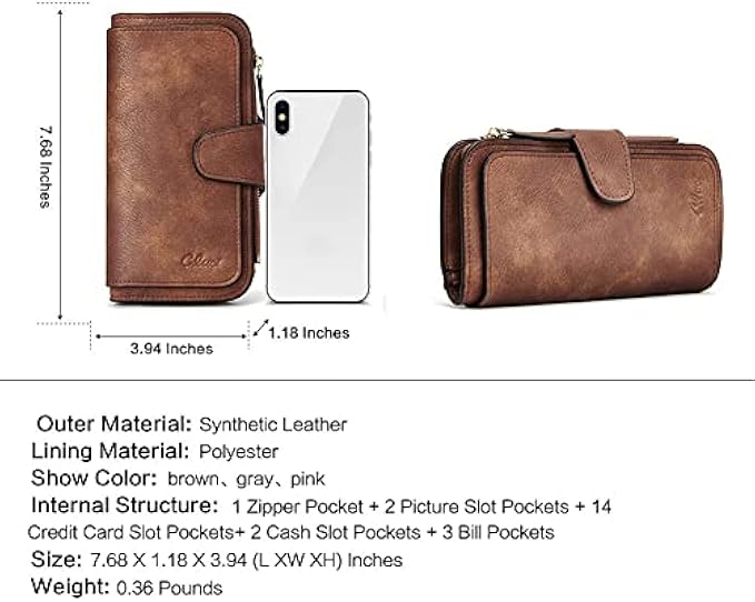 • [Practical Design]: The wallet for women is designed not only for stylish but for security. Our wallet is made of RFID blocking meterial that can prevent anyone from taking your information with an RFID reader. It’s a great gift for birthdays, Anniversaries, Mother's Day, Christmas and other special occasions.