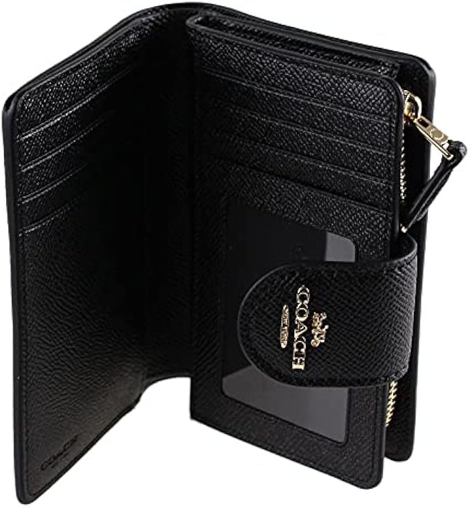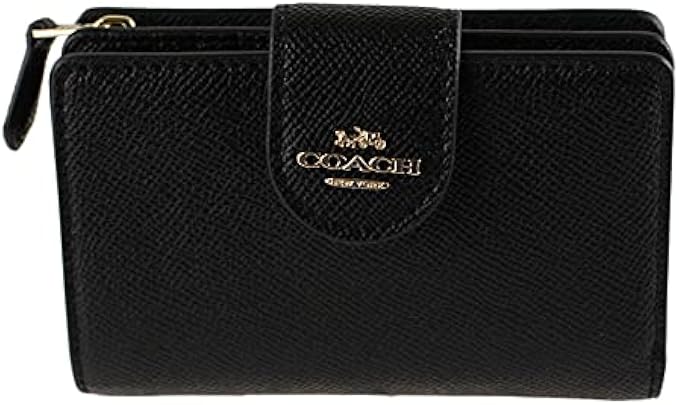 COACH Medium Leather Corner Zip Wallet in Black - Gold, Style No. 6390