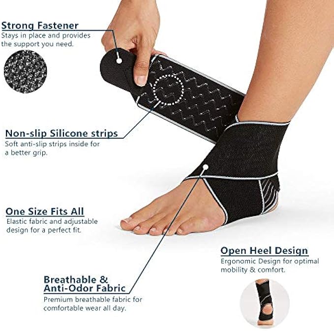 Adjustable Fit - Our ankle support is made with materials for a perfect adjustable fit. From the mid foot through the arch area, our ankle brace can be easily adjusted to suit all ankles sizes for men and women. With Velcro closure, the stabilization of your ankles remains securely fastened with just the right amount of compression that is perfect for you. Helps improve circulation, easy to put on and take off.