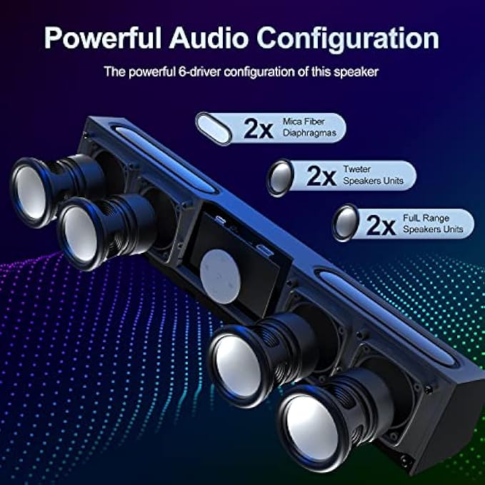 Computer Speakers, Bluetooth Computer Soundbar, 3.5mm Aux-in Computer Speakers for Desktop Monitor, Computer Sound Bar with Deep Impactful Bass, Gaming Speakers for PC