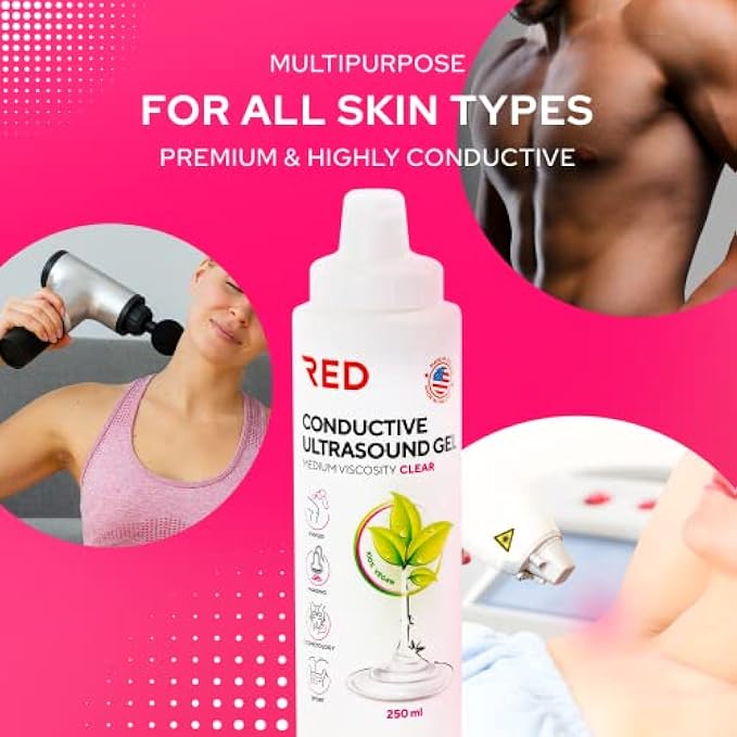 ? PREMIUM CONDUCTIVE GEL - Be on top of your game by using Red Medical cavitation gel that offers the highest conductivity rate without drying so fast, leaving a clean and non-sticky feel after every session. Unlike other gel products, our massage gel contains no dye or alcohol and is suitable for all skin types.