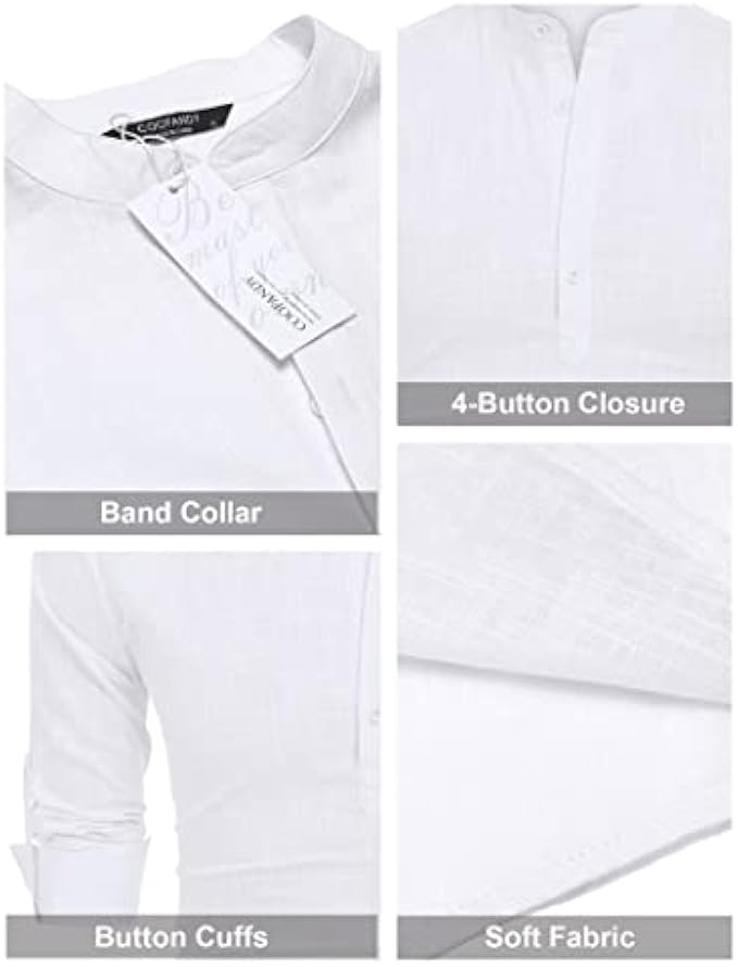 COOFANDY Men's Cotton Linen Henley Shirt Long Sleeve Hippie Casual Beach T Shirts