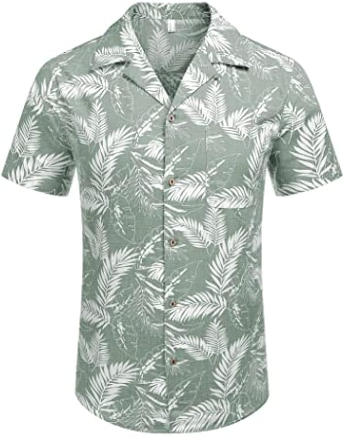 COOFANDY Men's Hawaiian Floral Shirts Cotton Linen Button Down Tropical Holiday Beach Shirts