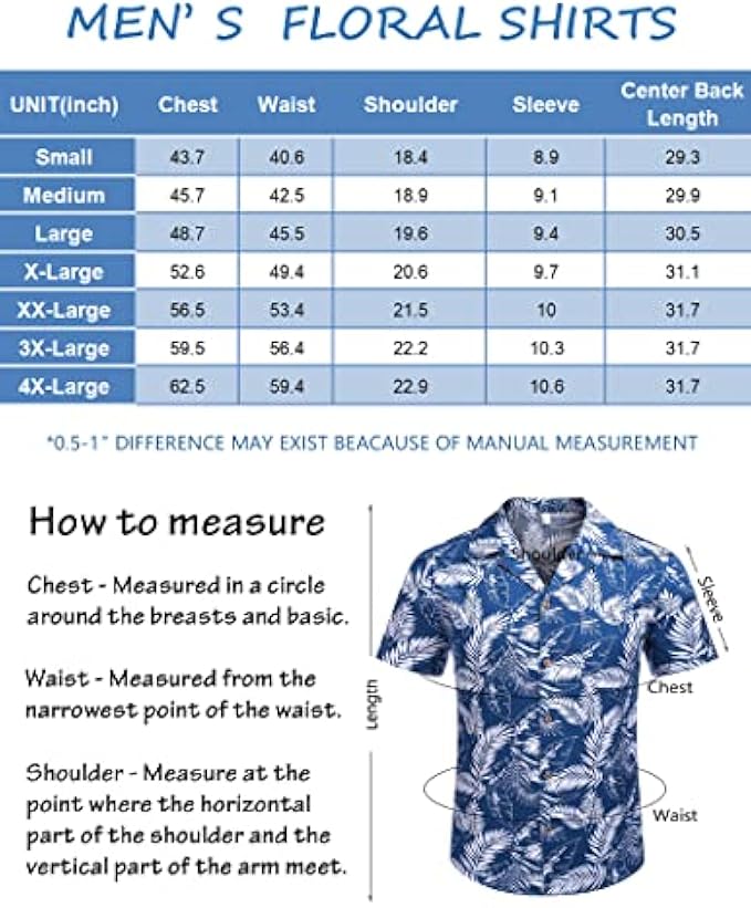• Warm Tips --- Washing Max Temperature 40°C. Machine and hand wash are both available for the mens floral hawaiian shirts. Please refer to our size chart carefully before you order.