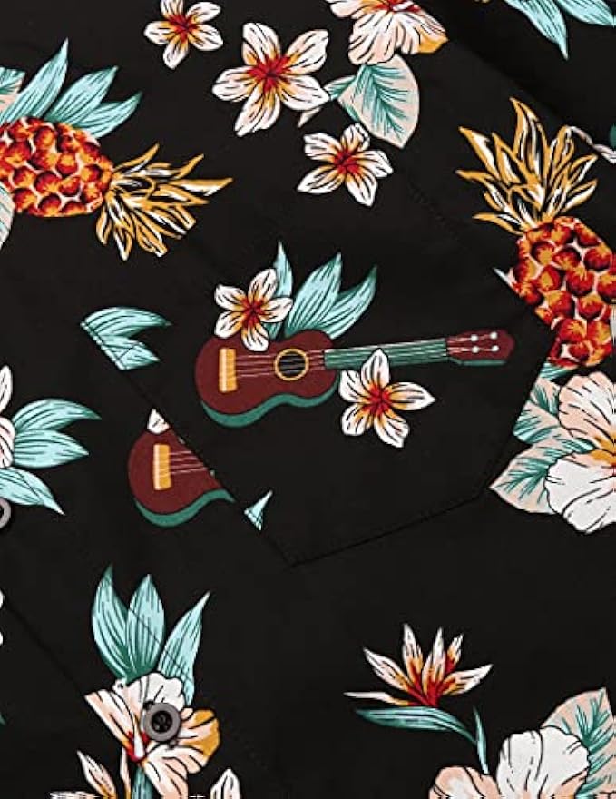 【STYLISH DESIGN】: The mens beach shirt features a beautiful print flower pattern with relaxed fit style, button up closure, turn down collar and left chest pocket, brings you a vogue and tropical feeling for a casual look.