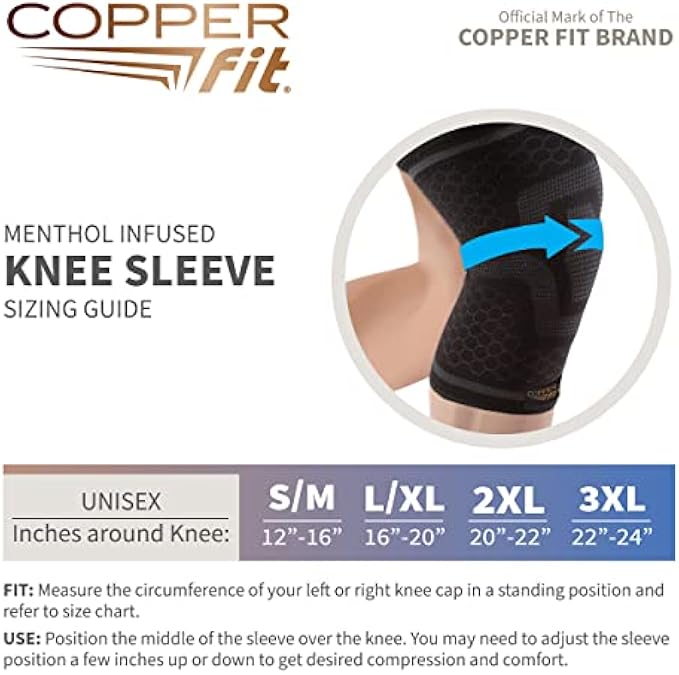 • Each package contains 1 Copper Fit ICE Knee Compression Sleeve Infused with Menthol, Small/Medium