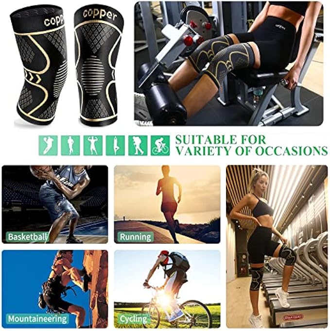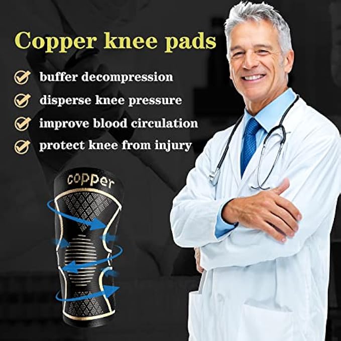 Copper Knee Braces for Knee Pain 2 Pack, Knee Compression Sleeve Support for Men and Women, Medical Grade Knee Pads for Running, Hiking, Working, Arthritis, ACL, Meniscus Tear, Joint Pain Relief