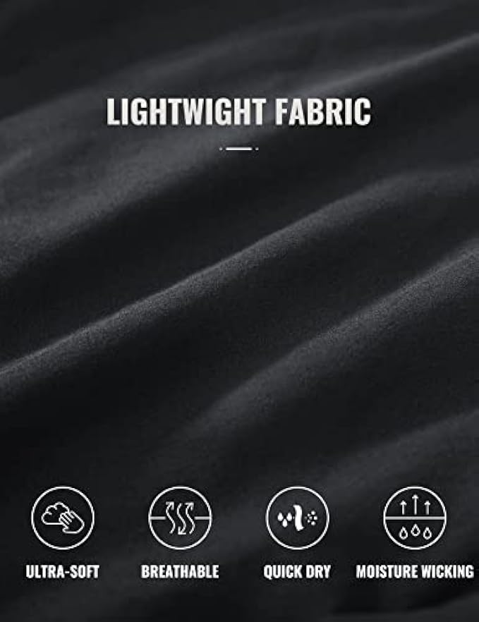 The fabric is soft & ultralight, and cool to touch. With high performance of quick drying, it can quickly wicks away moisture and ensure you feel cool all day.