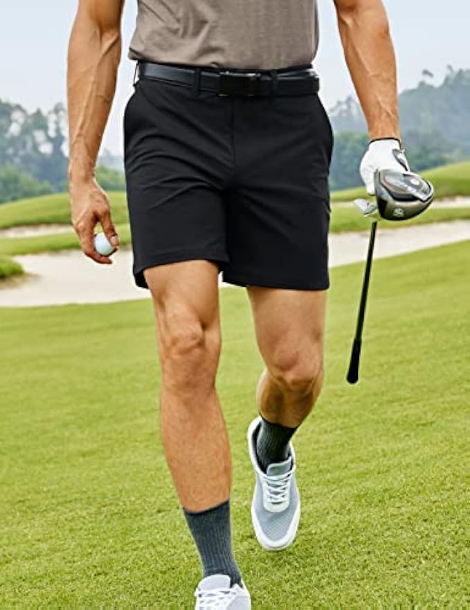 Golf shorts for men: Highly 4-way stretch for comfort and mobility. Breathable, waterproof fabric keeps you dry, a bit thick fabric resistant to tear.
