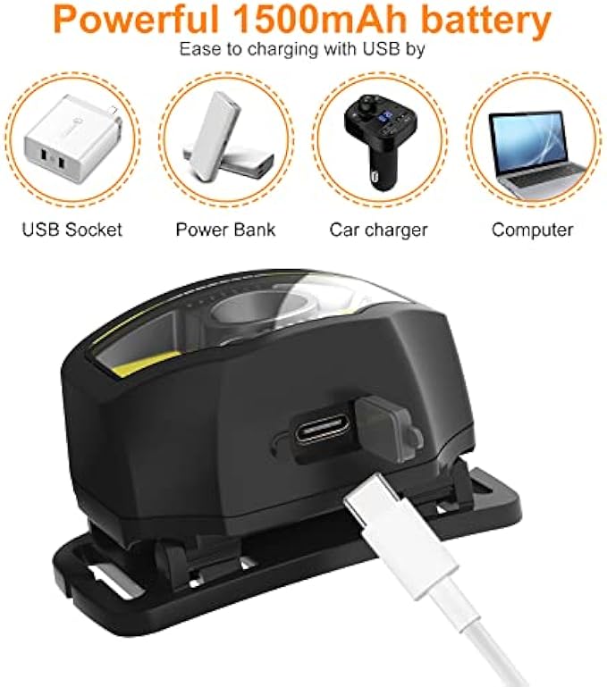Super Bright & Incredible Value: Headlamp flashlight uses a best-in-class LED chip, and the powerful camping light produces a bright, long-lasting beam of 1200 lumens with daylight color and clarity. Includes two high-performance headlamps for great value, durability, and portability. Perfect for running, hiking, and camping accessories. Smart Function & Motion Sensor: Unlike other versions, the Curtsod headlamp has a clever memory function that keeps the light in the same mode as the last time it was used when turned on again. In any mode, press and hold the on/off button for 3 seconds, and the light will turn off directly, no need to cycle through all the modes; it is also equipped with the latest smart sensor, which easily controls the light on and off with a wave of your hand, more convenient for your life and work. Type-c Rechargeable & 12 Modes: The upgraded charging method greatly speeds up the charging speed. Built-in rechargeable 1500mAh high-capacity battery, the LED headlight has 12 lighting modes to meet your various needs. ①In the button light mode, you can switch the main strong light, main low light, sub strong light, sub low light, red light, and SOS red light strobe. ②In the somatosensory mode, you can also switch between the above 6 lighting modes. Adjustable & Comfortable: The headlamp can be adjusted by 60° and fixed firmly to avoid shaking and sliding during operation. The head flashlight uses a comfortable elastic headband that can be adjusted to perfectly fit the head size of adults and children with a simple adjustment. A Great Cool Gifts :The headlamp comes in its own beautifully designed box. It will be the perfect gifts for Dad/Mom/Grandpa/Grandma/Wife, Mother's Day, Father's Day, Thanksgiving Day, Valentine's Day, and Christmas.