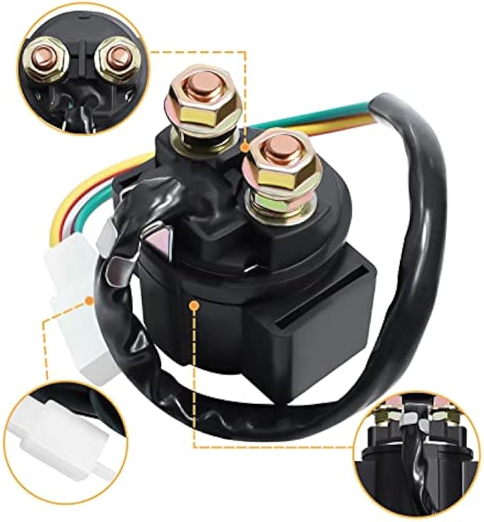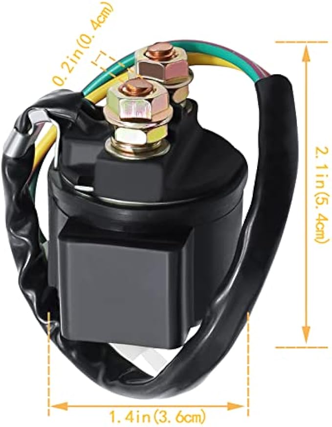 Fitment - Starter Solenoid Relay for Honda Clones 50cc, 70cc, 110cc, 125cc, 250cc etc. Also may fit brand with paretta 125 cc GY6 engine: Roketa, Sunl, Baja, Kazuma, Coolster, Taotao, Peace Ice, Kazuma Carroll Stream Eagle, Panterra, Kymco, Redcat Tank Wildfire Xtreme Seaseng Qlink Yiben Jonway Jmstar, Vento Chinese 4-stroke 50cc-250cc ATVs, Dirt Bikes, Scooters, Go Karts OEM Part Number:35850-MZ0-J10、35860-MCA-A61、35850-MCA-003、35850-MCA-A61、0452761、35850-286-007,35850-286-027,35850-286-017,35850-375-000 Fit For:Honda GL1800 GOLD WING 2001-2021、Honda CB300 CBF300 2018-2021、Honda GL1500 GOLD WING 1990-2000、Can-am DS 70 mini 2008-2019、Can-am DS 90 mini 4-Stroke 2008-2019、Can-am DS 250 2006-2019、Can-am DS 250 2006-2019、BOMBARDIER CAN-AM ATV DS250 2006-2019、Polaris Ranger RZR 170 2009-2021、Polaris Phoenix 200 2005-2018、Polaris Sawtooth 200 Quad 2006-2007、Suzuki GSX-R600 GSX-R600Z 2001-2003、Suzuki GSX-R750 2000-2003、Suzuki GSX-R1000 2001-2004、Suzuki GSX-R1000Z 2003-2004 High cranking power and reduce startup switch electric current.Guaranteed OEM Quality and Fitment. High performance relay, made from copper coil inside, rust resistant, easy to ignite, oxidation resistant and heat resistant. The contact is silver alloy. Because sterling silver is too soft, the contact life for relays is very short. Special metals in silver alloy can improve the service life of the whole relay. Perfect replacement for compatible Yamaha relays for continuous operation. After sales:Quality You Can Count On!The Premium Solenoid Relay is an Excellent and Affordable Solution for Your Motorcycle/ATV! if our products in a year quality problems can not be used, We'll replace it for you。