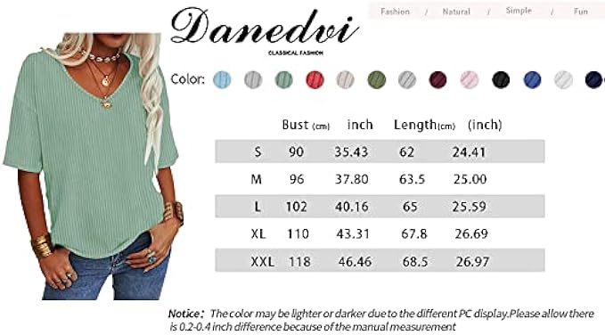 • Features: Summer oversized ribbed T shirt tunic tops, V neck, Half sleeves,Solid color,loose fit, basic,simple casual style and never out of fashion.