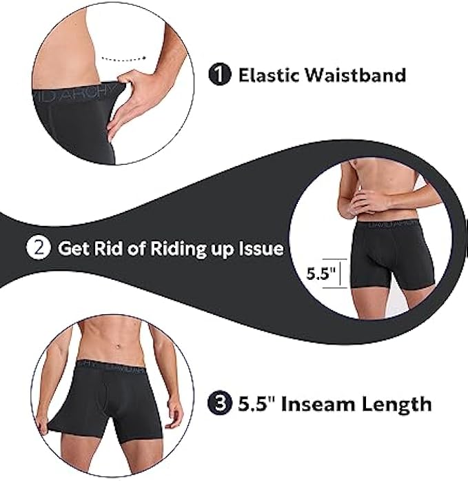 Perfect Fit: With no riding up legs, our mens underwear boxer briefs stay in place all day long without bunching up or sagging. You'll feel confident and secure from dawn until dusk.