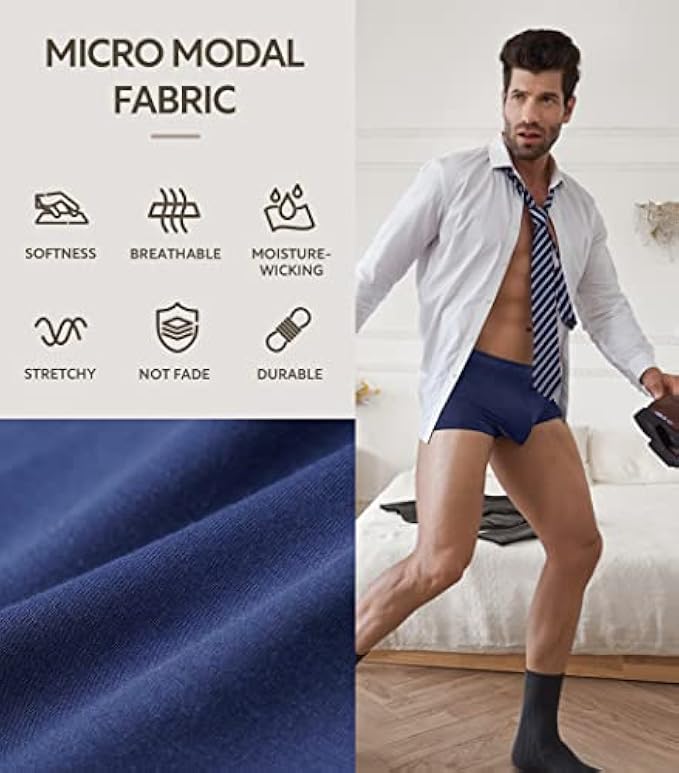• SUPERIOR COMFORT: Micro Modal fabric is natural material which is derived from responsibly sourced wood-based materials. The fabric for the mens boxer briefs is two times softer than cotton, cool against the skin, silky to the touch, comfortable, soft, lightweight, breathable and moisture wicking.