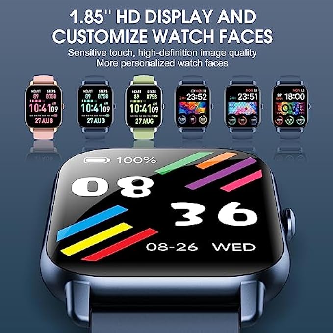 Stay Connected and Informed: With its built-in speakers and Bluetooth connectivity, this Ddidbi smart watch allows you to make and receive calls and acts as a multimedia player for your phone. It also supports information reminders and social media notifications (Facebook, WhatsApp, Instagram, Twitter, etc.). All notifications are displayed on your wrist and reminded by vibration, so you won't miss any important calls or messages while out for a walk or workout, even if you put your phone in your pocket. Sleek 1.85" Touchscreen Design: Our P66D women men watches features a 1.85-inch high-definition full-touch color screen, providing you with a better visual and operating experience. The smartwatch app also offers over 100 personalized dial wallpapers to choose from, and you can even customize your dial wallpaper with your favorite photos. With two different style straps - a sports strap and a regular strap - you can switch between sports and leisure to highlight your unique personality. 112 Sports Modes and IP68 Waterproof: This fitness tracker offers over 100 indoor and outdoor sports modes, including walking, running, cycling, skipping, basketball, football, and more, to meet the needs of most sports enthusiasts. It records your exercise data, including steps, heart rate, calories, and distance, and generates your health report. With IP68-level waterproof performance, this step counter watch can be used even on rainy days or while swimming. Monitor Your Health around the Clock: Ddidbi smartwatches help us learn more about our health. The watch features a built-in high-performance optical sensor that can monitor our heart rate in real-time 24 hours a day. It also automatically monitors your sleep status at night and provides a comprehensive sleep quality analysis (deep sleep, light sleep, and wakefulness). The app will provide your health analysis report for the past week, analyze and remind you of your physical status and trends, and give you suggestions to help you adjust your lifestyle. (The data is for reference only, not for medical use) A Multifunctional Smart Assistant: This watch for men women has many daily practical functions, including an alarm clock, stopwatch, timer, music control, weather forecast, sedentary reminder, find phone, camera control, and other features. It can be a smart assistant in our life, helping us to live more conveniently, smarter, and healthier. Designed with a 280mAh large-capacity low-power battery, it can last for about 7 days in daily use and about 15 days on standby. Experience Exceptional Service: This iOS android smart watch is compatible with most iOS 8.0 and Android 4.4 and later smartphones(Not for PC, iPad, and Tablets). We are committed to providing you with smart wearable devices and prioritizing your experience and comfort. If you have any questions or suggestions about our products, please do not hesitate to contact us directly. We are always ready to provide you with the most satisfactory solution.