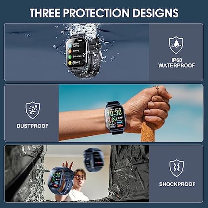 • 112 Sports Modes and IP68 Waterproof: This fitness tracker offers over 100 indoor and outdoor sports modes, including walking, running, cycling, skipping, basketball, football, and more, to meet the needs of most sports enthusiasts. It records your exercise data, including steps, heart rate, calories, and distance, and generates your health report. With IP68-level waterproof performance, this step counter watch can be used even on rainy days or while swimming.