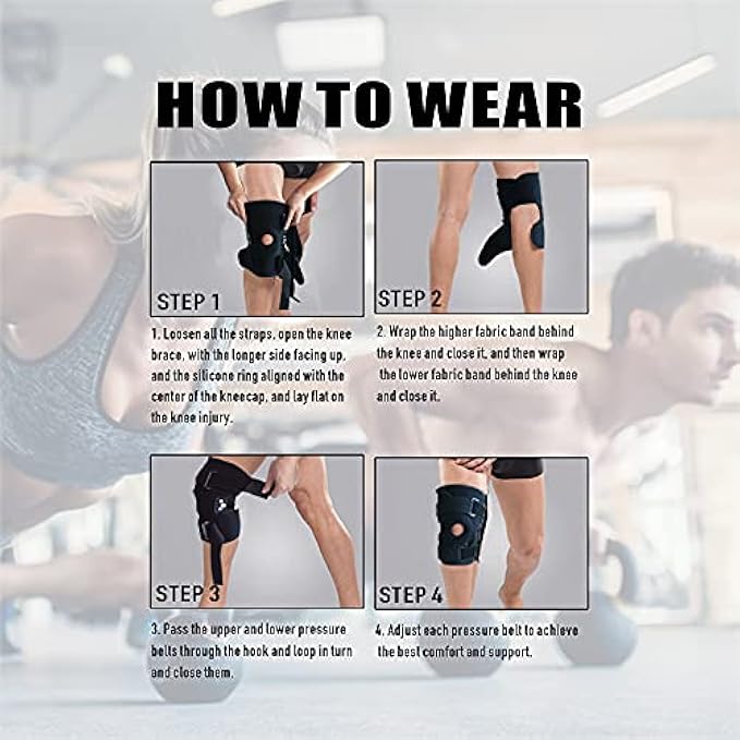 ?〖Adjustable size〗Double adjustable compression straps, Velcro buckle〖Adjustable size〗Double adjustable compression straps, Velcro buckle design, unisex, can easily adjust the size, suitable for most people, the knee brace is suitable for the size range:10"-13"(25.4cm-33.0cm).