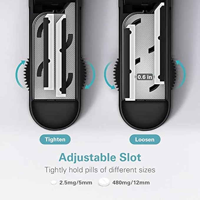 【Accurate Cutting For Pills of Any Size】There are 2 adjustable bars that can safely accommodate pills of any size, round, rectangular or oval. This medicine splitter can cut pills with a width of 2mm-15mm, so it can easily cut tiny pills of 2.5mg.