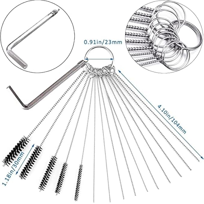 • Brush Set 4.1 Inch :18x Cleaning Needles 12x Cleaning Brushes 2x Wrench