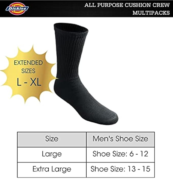 Dickies Men's All Purpose Cushion Crew Socks (6/12 Packs)