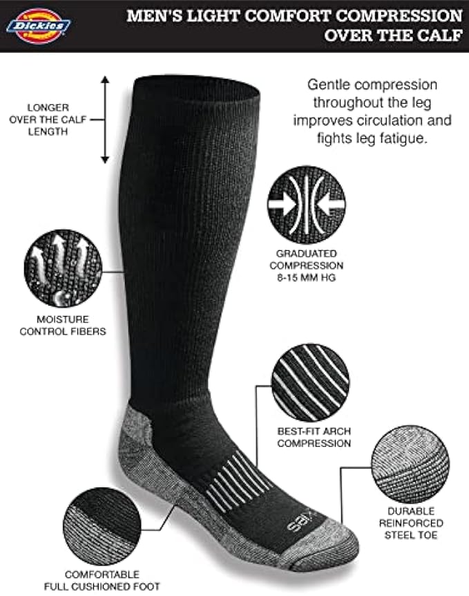 Dickies Men's Light Comfort Compression Over-the-calf Socks