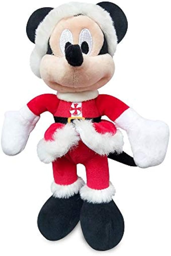• Mickey Mouse knit beanie hat with embroidered face and padded ears; Bib with embroidered Mickey applique and self-stick fabric closure; Soft Santa Mickey plush toy with detailed sculpting, embroidered features and furry trims