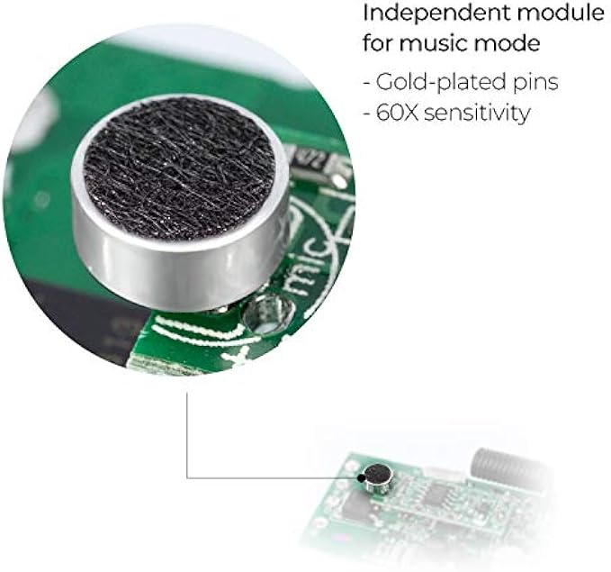 ➤Music Mode: An independent microphone in the control box, gold-plated pins, a 60X sensitivity, beautifully follows the rhythms of your music.