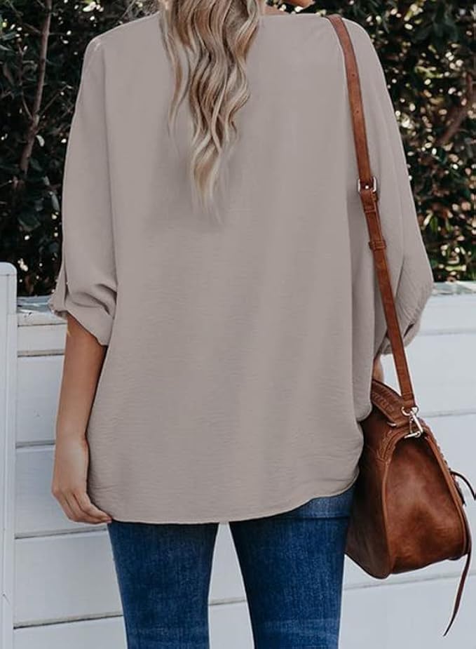 Summer tunic blouses ,featuring 3/4 Cuffed Sleeve,solid color give us a cool and fresh style,lightweight and wel-made material create a great wear experience for you.