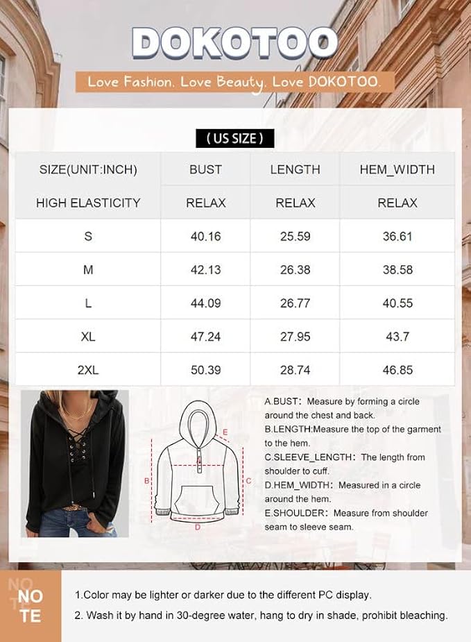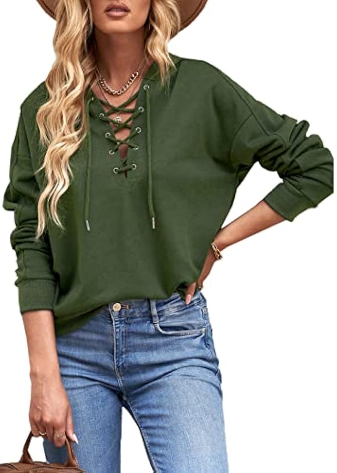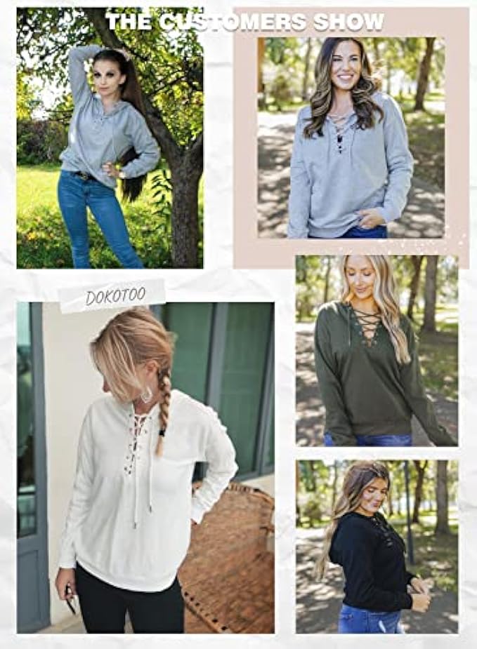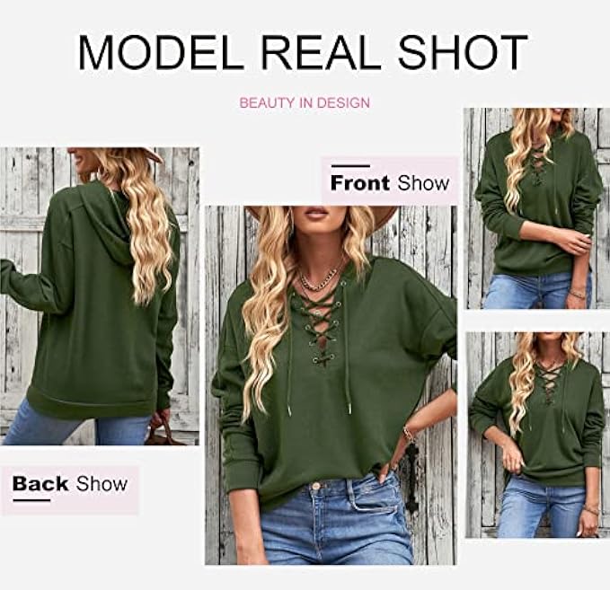 Women sweatshirts are featuring hooded style with cross drawstring design in the chest,which is chic and classic,loose fit can fit most ladies in different body shape.