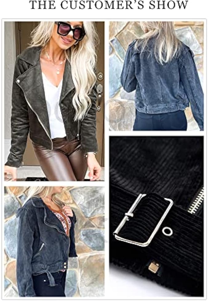 Dokotoo Womens 2023 Winter Fall Zip Up Corduroy Short Jackets Coats with Belt